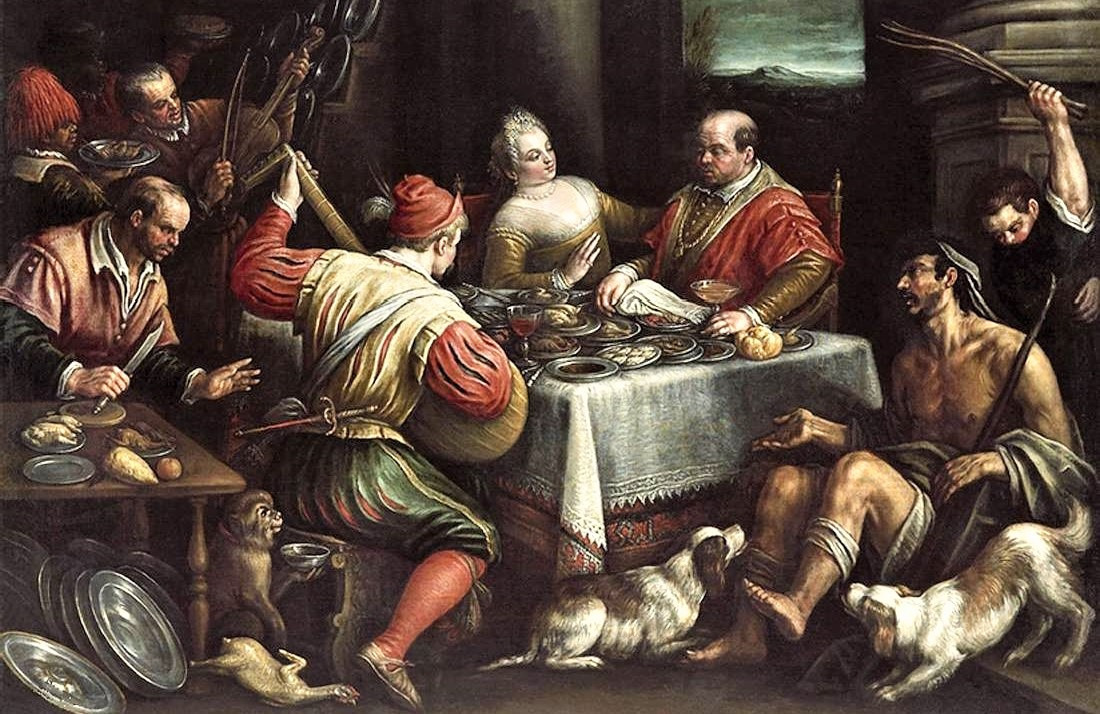 부자는 “고운 옷과 값비싼 옷을 입고 날마다 호화롭게 즐기며 살았다.”(루카 16,19)고 한다. 반면 라자로는 “몸은 헌데투성이에다 부자의 집 대문 앞에 버려진 채”(루카 16,20) 개들이 상처를 핥을 정도로 극심한 가난과 질병 속에 있었다.